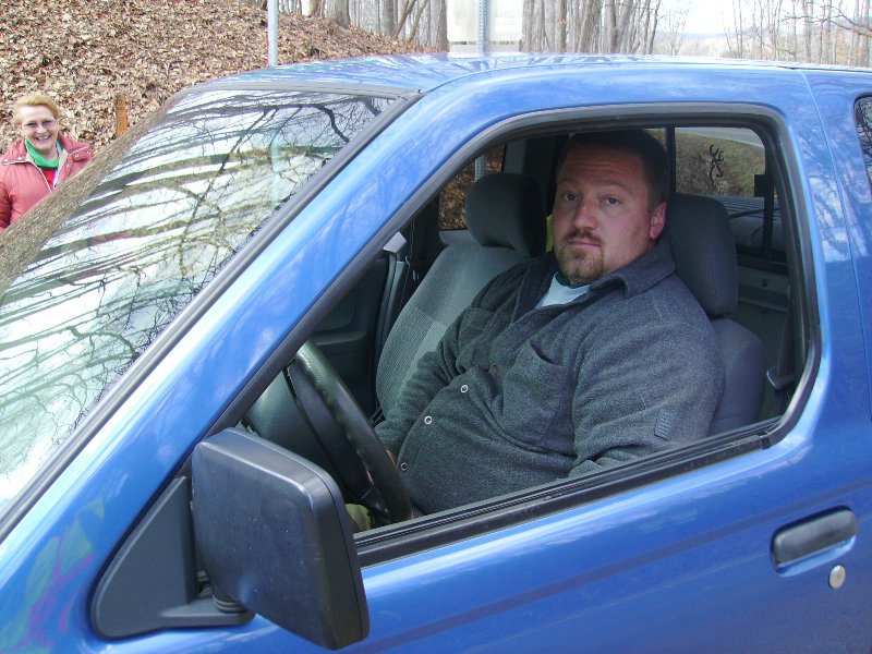 "No," said Tom, trying hard to keep a mocking tone out of his voice, "it's the frogs." Sure enough, the wallows beside us reverberated with their song. And my skull reverberated with numb. The rain held off long enough for us to get back to Tom's car and actually didn't start up until we were sitting in the Great Machipongo Clam Shack eating our lunches. We made great time (3 hours, 11 minutes), had a great time on the road, and didn't get soaked...great timing all around! A Lift from a Mud Bogger On my first trip out to the Scottsville area, Dawn and I chatted with Dr. Margaret Emanuelson, a former OSS agent during WWII. She was quite interesting but I hadn't brought my interview gear along because we weren't really planning to stop anywhere; no tape recorder, no camera, no notebook, nothing�how dumb am I? (No need to answer). Anyway, I wanted to get back up there soon as possible to conduct a proper interview and today was the first chance I'd had. Another snowstorm was on its way, so Dawn and I drove out to Scottsville in the early morning hours so we could complete a hike before sitting down with 008. We made it to Scottsville around 8 a.m. and then scouted out our route for the day. Then it was back to town to get started. We figured on walking 8 miles, going out 4 then turning around to come back to the car. But after driving all that way, we didn't want to just log 4 official miles, so Dawn entered a few businesses and started asking around to see if someone would give us a ride. She struck out the first two places she entered then hit a home run on her third try.