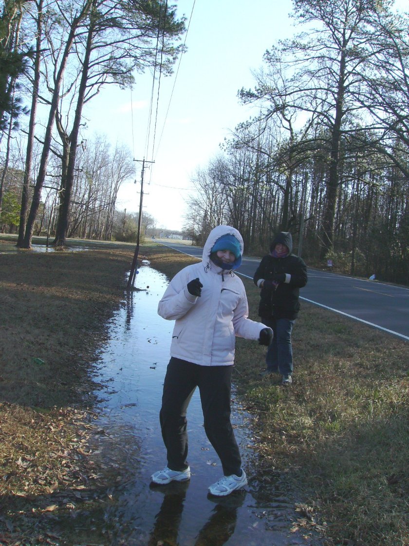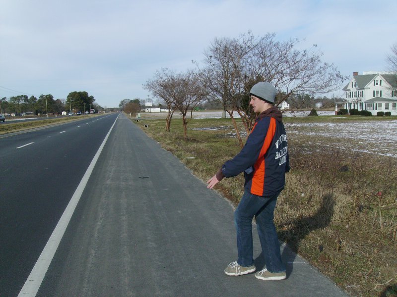 "She bites," Kurt warned me. I eyed the teensy creature and figured, What the heck? I scratched her behind the ears and her shaking became the delirious tremors of a detoxing Courtney Love. I chatted with Kurt about his business and found out that all of the Windsor chairs he offered for sale were handcrafted in his workshop using the same types of tools and methods as the original chair makers around the time of the Revolutionary War. Wow. Not only that, but for the same price that I could purchase one of the chairs, I could take a 5-day class and build a chair for myself. Double Wow. There was a class scheduled to begin next week, so, without hesitation, I told him to count me in. Well, there was a slight hesitation. "I'm really not the handiest person in the world," I said, which was the understatement of the year. "Is this class just for people who already know woodworking or is it for beginners too?" "You don't need to know anything," Kurt said. "I'll show you what to do every step of the way." "Great," I said. "'Not knowing anything' is my middle name." And, so, just like that, I signed on for yet another surprise adventure discovered along my walk. As Tom Hanks said in Cast Away, "Tomorrow the sun will rise. Who knows what the tide will bring?" For Tom's character (yes, Tom Hanks and I are on a first name basis...as far as you know), the tide brought him a lavatory door that saved his life. For me, next week's tide is bringing me a chair. I don't think it's going to save my life...but you never know. Maybe there's some situation where all of a sudden an alligator will come into my room and I'll step up onto my chair and it'll be unable to spring up to get me. Let's hope it doesn't realize it can bite through the wooden legs and drop me to the floor. For its sake, I mean. 'Cause then I'd have to break bad and go all Crocodile Dundee on his prehistoric butt. Running for Baby Seren Recently, I discovered another reason to meet Rich for my weekly Wednesday morning runs. A high school classmate of mine, Lance Windley, has an infant daughter who was born with several debilitating conditions. She's already beaten the amount of time the doctors guessed she would live. Lance's wife, Jennifer, maintains a blog where she talks about their baby, named Seren. In the blog, she mentions how a friend of hers who had heard a good way to ensure a "good" run was to run for someone else went out running one morning and dedicated her run for Seren. Thus inspired, Jennifer also went out running and came up with the idea to run 1,000 miles for her daughter, combining her miles with those of others who dedicate their miles to Seren. So, today I joined the cause. It's only 4 miles, but knowing it was for Baby Seren, I ran them harder today then I have the past couple of weeks. If you want to also run for Baby Seren, read about her story, or send a supportive message, check out the blog: Only God Counts the Stars. Double the Endorphins Icy conditions on the roads have kept me from logging any "official walks," but I've still been getting outside whenever possible to keep my legs from flabbing out. Thursday, I met an old high school friend, Angie Harrington, just a couple of miles from my house and we did a short hike around Poquoson. We commiserated about our similar see-sawing weight loss and gain stories and knocked off an hour's worth of walking in what seemed like 10 minutes. She had a busy day planned and couldn't walk any longer than that; I, on the other hand, had no excuse. So, after we parted and I drove back home, I drank some water and then went back out on the road for another 5 miles, alternately running and walking for about an even split. Great way to get the day started. Suitably impressed with myself, I took my big head out for another double-workout the next morning. This time, I started off with a 5-mile walk and finished up running some interval sprints. You heard me right: sprints. My street is a quarter-mile long, so I started out on one end and sprinted to the other. Then I walked back and repeated the process 3 more times. A mile's worth of sprints and a mile's worth of walking back to the starting line. I was feeling froggy when I started but I was a limp noodle when I finished. Not only that, the next day my legs were so sore I didn't walk at all. Just bitched and moaned all day. You'd think I'd learn from all that, but no. After a day of rest, I drove over to Terry's house and we took her blind dog out for a 2.5-mile stroll around her neighborhood. So what did I do next? Drove over to the Noland Trail for a 5-mile hike on the hilly path. My butt was seriously dragging by the time I finished, but for the third time in four days I'd logged 8 miles. Bill Walsh has been telling me about endorphin highs and saying that I'm addicted to the exercise. Maybe so. But if you're going to have an addiction, I guess this is one of the better ones to have, ranking right up there with sex addiction. Just ask Tiger. Dancing Down the Road My nephew Mike is home for his winter break from college. I visited him up at UVA in the fall and he gave me a tour of the campus. Now that he's home, he said he'd like to go out on one of my walks with me. Before he could change his mind, I took him up on it. We started out today in an Eastern Shore town called Nelsonia and hiked the 5.8 miles past the Tyson Chicken Plant up to Temperanceville, where we turned around and walked the same 5.8 miles back to my car. Well, I "walked." Mike, rubbing my face in his youthful energy, danced his way down the road. Not all the way; but every now and then he would break out of cadence and start doing some snappy step-step-steppity-step on the shoulder�fox-trotting, box-stepping, or some other such step that all looks the same to me.