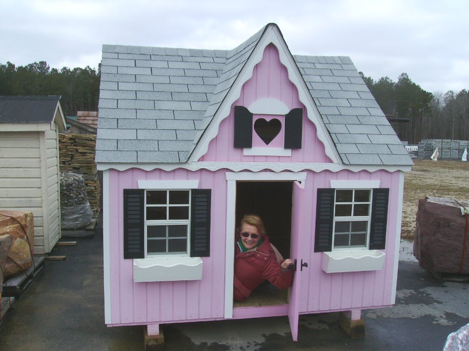 Thus armed, Dawn and I drove down to the green sign welcoming visitors to Temperanceville. There, we hopped out of the car and posed by the sign, hoisting our brown-bagged bottles. Then we parked and popped the top on the Golden Ale for a little pre-walk carbo loading. Dawn's knee was feeling much better, and we debated whether it was the booze or the pills that was helping it. Though we couldn't agree on that, one thing we did agree on: we would make horrible spokespeople for any type of addictive support group. Dawn noticed some miniature houses outside a hardware store. "These would be great for the dogs," she said, cutting through the parking lot and making a beeline for them. Without pause, she got down on all fours and crawled inside. "Yep, these would be perfect." Needless to say, Dawn doesn't worry about what other people think either.