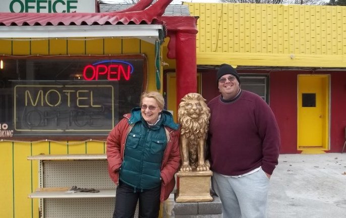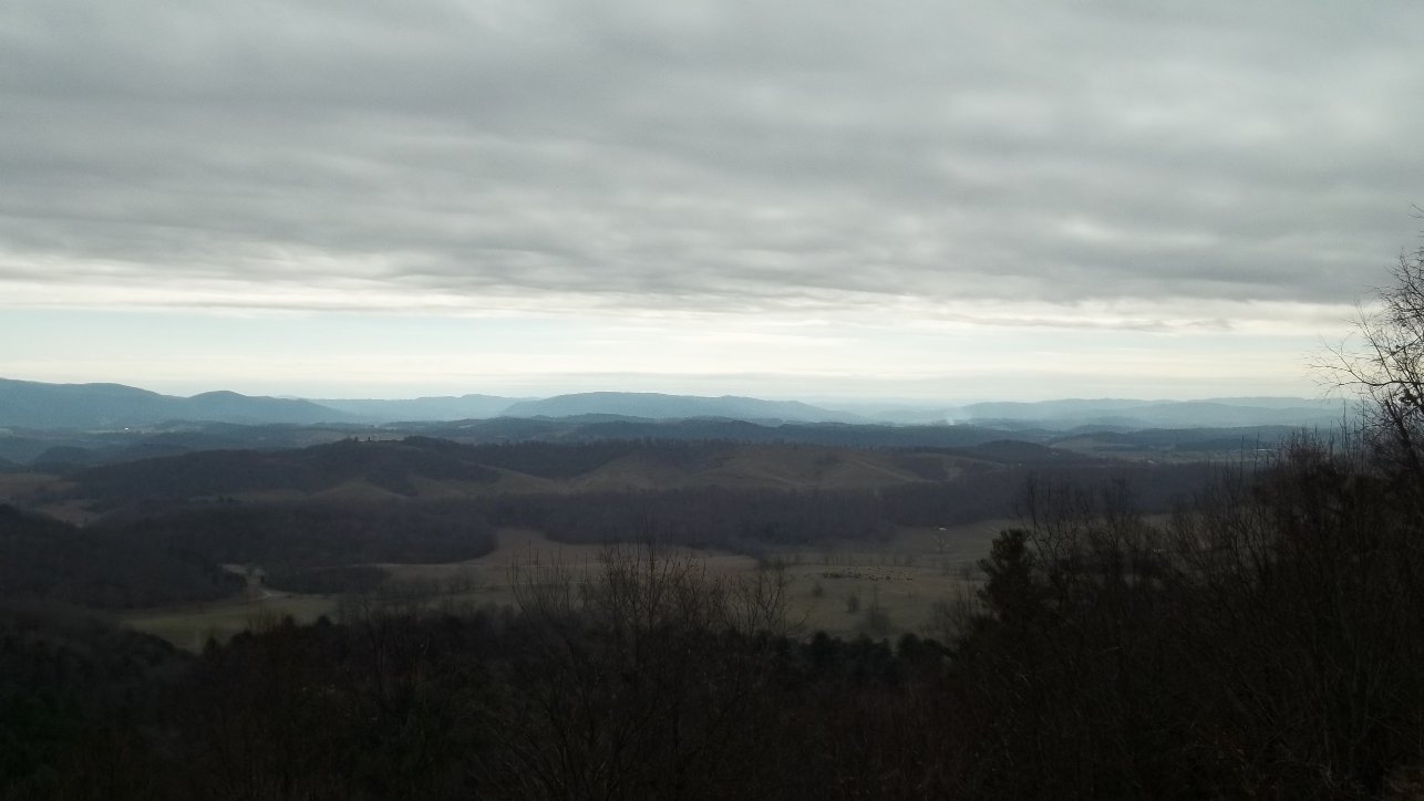 Sometimes the towns we've come across bore names of other recognizable cities or states, such as New Baltimore, California Crossroads, Scotland, and Washington (the town, not the District of Columbia). So it was no real surprise when our path took us through the tiny town of Dublin. But as we scouted the route we would be walking to Pulaski, I was surprised when we came across the Beijing Motel on the outskirts of town. Needless to say, I marked that as our stopping point. So now that you know I'm not crazy (at least, not more than my usual state of mind), let me take you back to the beginning of the day. We'd stayed in a Christiansburg hotel last night and, wouldn't you know it, we picked the town that would suffer a burst water main overnight. Dawn would have to suffer not only my stinky fragrance but also the arctic weather. The temperature was in the 20's when we departed and I had to scrape a thin layer of snow and ice from the car. "It's colder than a bum's balls out here!" she exclaimed. "Sack Le Blue!" It was cold, but at least we were prepared. Dawn was decked out in ski-bibs and I wore four layers of clothing. I was also carrying my rucksack for the first time since reinjuring my knee, so we had water and snacks and even some chemical hand-warmers that had been Christmas gift last year (thanks Susie!). The low temps were bad enough, but the wind was doing all it could to suck the warmth from our bones. It would lull us into complacent plodding and then whip us with a gust, almost knocking Dawn on her keister a couple of times. Once, we were approaching a car lot that had an inflatable Santa staked to the turf near the entrance. Saint Nick was halfway deflated though, folded over on himself. "Ah, look," I said, "Santa's taking a nap." Just as we were passing by, the wind gusted and Santa jumped up to his full fifteen feet with a loud Thwock! Dawn and I each jumped out of our skins, screaming. I won't say which of us sounded more girly, but I will say that at least the shot of adrenaline warmed us up. ![]()