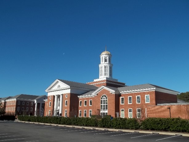 On the other side of the highway atop a steep hill stood a pentacostal church. Posted on their sign were the words, Let the healing begin. "How's that for a sign?" I said. So Dawn hobbled up the hill and I raced ahead to finish the last five miles. When I drove back to pick her up, I had a tough time finding her. The church doors were closed and she wasn't sitting out front. I circled the church and yelled her name in every direction but heard nothing in reply. I was just starting to imagine Tommy Lee Jones organizing a search party�"What I want out of each and every one of you is a hard target search of every gas station, residence, warehouse, farmhouse, henhouse, outhouse, and dog house in that area"�when I thought, Hey, Dummy, why don't you take a look down the hill? Sure enough, there she was, snoozing away without a care in the world. She was lying in the sun with the tail of her shirt pulled up across her eyes. I was too relieved from my brief moment of panic to mess with her appropriately. I simply woke her and helped her up the hill to the car. It wasn't until we were driving back down the hill that I realized what a great photo op I had just missed. "Hey, would you mind going back out there so I could get a picture of you sleeping on the side of the hill?" Though her reply didn't have any words in it, it did include a hand gesture. And even though I didn't snap a photo, I think you can visualize that picture on your own. Worst Tour Guides Ever During my trek across the state, I've visited many of the Commonwealth�s finest universities. Being the dank that I am, I have joked, jabbed, and gibed the traditions and scholarly aspects of each while walking through campus. You want examples? Okay, here goes: When I wrote about my tour of the University of Virginia in the company of my nephew Mike, a student at UVA, I made fun of its prestigious reputation and the pretentious names that went along with it, such as �grounds� instead of �campus� and �first years� instead of freshmen. When I walked through Sweet Briar College, I made sexist jokes about what types of classes the all-female student body studied. And when I walked through Radford University, I made numerous jokes about their party reputation and the prison-like appearance of campus. I know, I know, I'm a meanie. So, before I belittle the campus I visited today, let me first share a few positive facts about Christopher Newport University: CNU became a four-year college in 1971, and a university in 1992. Former United States Senator Paul S. Trible, Jr., became President of CNU in 1996 and he has revitalized not only the school, but the entire surrounding area as well. Scores of modern buildings have been erected, with the crown jewel being the Ferguson Center for the Arts, a 1,700-seat, Broadway-style theater. In recent years, applications have gone up by more than 700 percent and students' SAT averages have increased by more than 240 points.