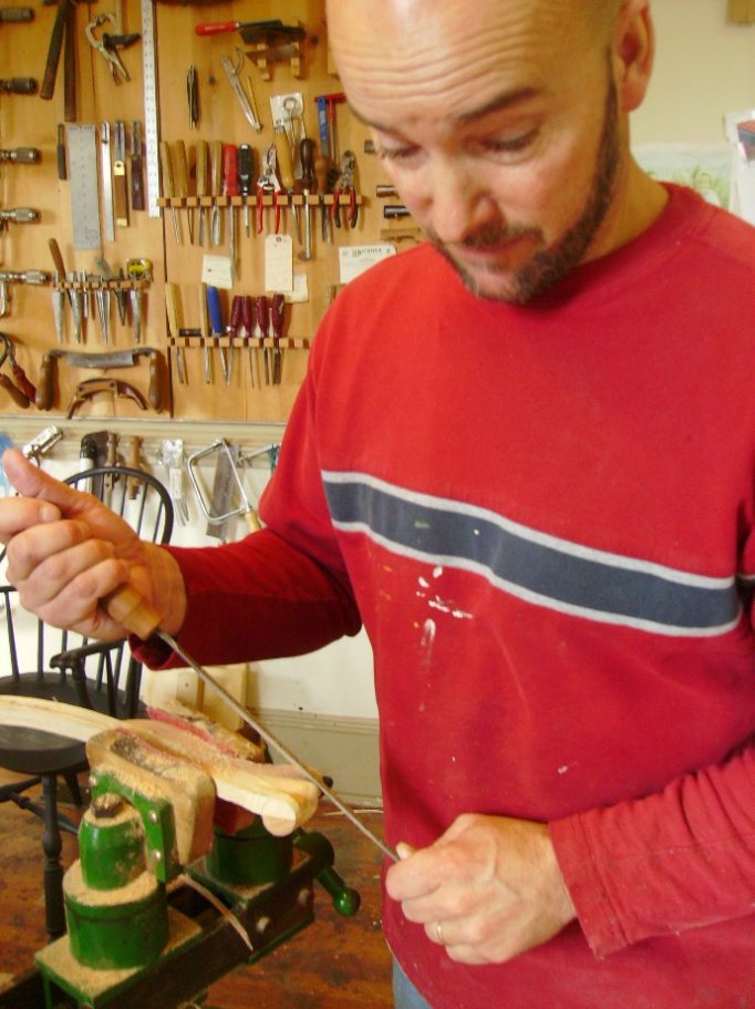 Once Kurt finishes building the chair, Sally comes in to finish and paint it. Then Kurt starts in on another one. Unless, that is, he’s teaching a class, something he tries to do once a month. “Most people don’t understand what goes into a piece of furniture,” he says. “Steam bending wood, taking straight pieces of wood and bending them into the shapes that you want—they get pretty excited about that. When I give somebody a chunk of what looks like regular old firewood and pass them a hatchet and say, ‘Split the blanks out.’ It’s a fun class.” It’s also five full days of hard work. But at the end, students leave with a Windsor chair that they built. A piece of functional art that their descendants might still be using a hundred years from now. “There’s nothing better,” Kurt adds, “than making something with your own two hands.” |